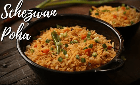 Schezwan Poha is a spicy and flavorful dish made with flattened rice (poha) and a special Schezwan sauce. It is a popular street food in India, known for its tangy and spicy taste. The dish is typically garnished with vegetables, peanuts, and fresh herbs, making it a delicious and satisfying meal option.